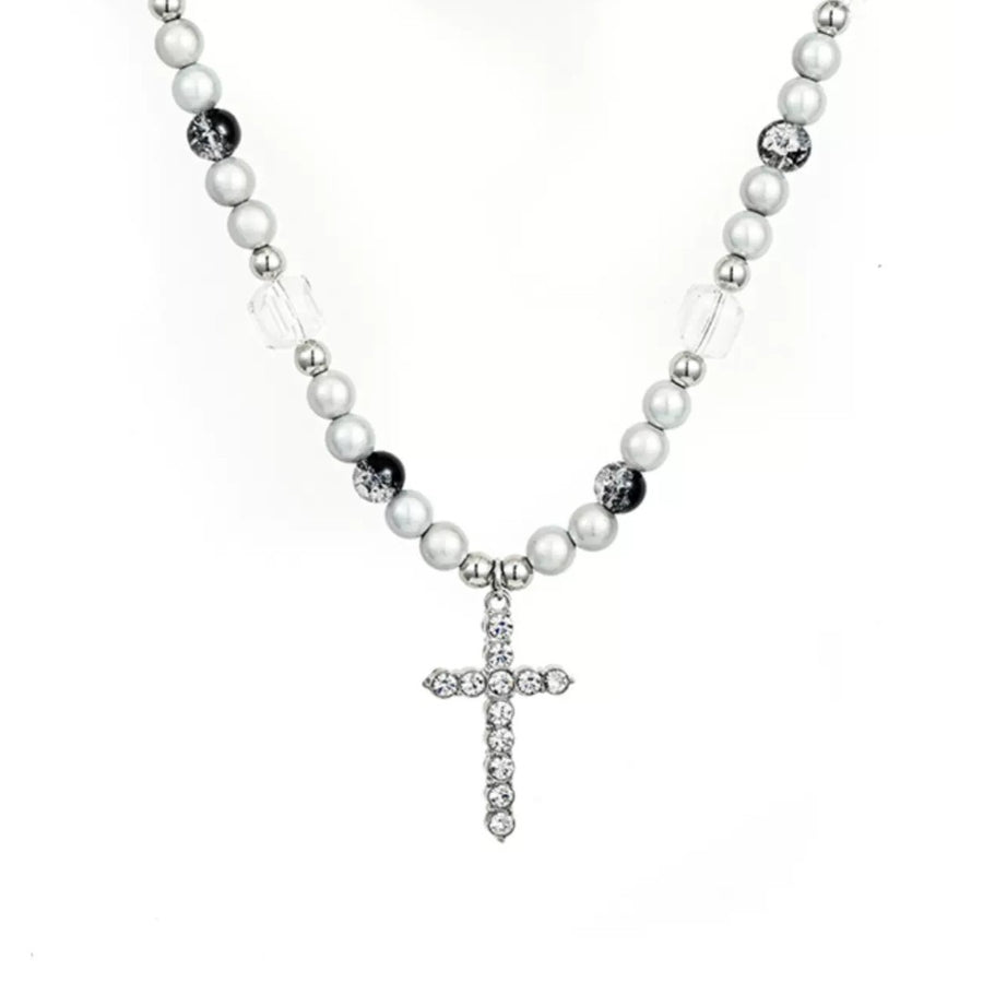 This Reflective Pearl Cross Necklace boasts a perimeter of 51-80cm, making it a versatile and stylish addition to any outfit. The reflective pearls add a touch of elegance, while the cross design adds a meaningful touch. Perfect for any occasion, this necklace is a must-have for any fashion-forward individual.